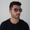Óculos com CLIP-ON. Armação em metal na cor azul escuro, hastes em TR-90 na cor preto fosco e ponteiras pretas. Acompanha Clip-On de TR-90 na cor azul fosco com lentes polarizadas. As peças Clip-on são encaixadas na armação por imã, tornando a peça 2 em 1 super versátil e prática.